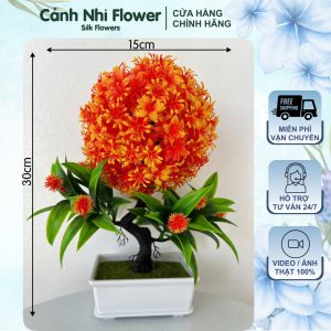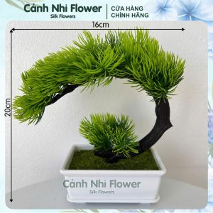 Chậu cây tùng mini bonsai cao 20cm nhân tạo – điểm nhấn xanh mát cho không gian – Cảnh Nhi Flower