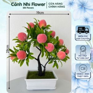 Chậu cây quả mini bonsai nhân tạo cao 28cm – điểm nhấn xanh mát cho không gian – Cảnh Nhi Flower