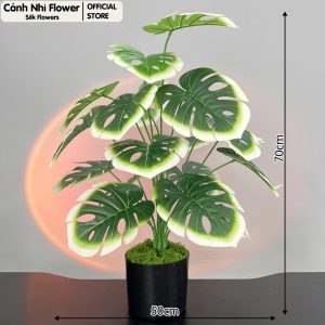 Chậu Cây Trầu Bà Monstera 18 Lá Nhân Tạo – Cao 70cm, Tán Rộng 50cm – Cây Giả Trang Trí Trong Nhà – Cảnh Nhi Flower