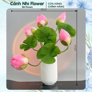Cụm hoa sen 3 bông, 2 búp, 4 lá – Cao 65cm – Hoa vải, thân nhựa lõi thép – Cảnh Nhi Flower