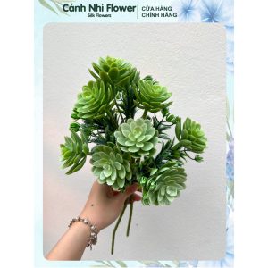 Cụm sen đá giả – Cụm 5 bông sen + 5 ngọn vạn tuế cao 36cm – Cảnh Nhi Flower