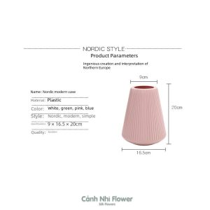 Bình nhựa hình trụ cao 20cm phong cách Nordic Bắc Âu là lựa chọn hoàn hảo để mang đến sự tinh tế và hiện đại cho không gian sống. Với thiết kế tối giản, chất liệu bền đẹp và màu sắc trung tính, bình phù hợp để cắm hoa tươi, hoa giả hoặc trang trí độc lập, đáp ứng mọi nhu cầu decor hiện đại.