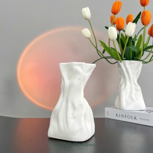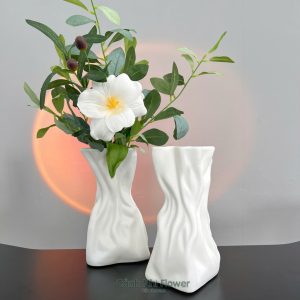 Bình Nhựa Họa Tiết Nhăn Nheo Cao 20cm – Lọ Hoa Trang Trí Phong Cách Hiện Đại – Cảnh Nhi Flower