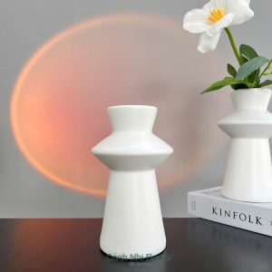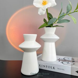 Bình Nhựa Trắng Đĩa Bay Cao 19cm – Lọ Hoa Decor Phong Cách Tối Giản – Cảnh Nhi Flower