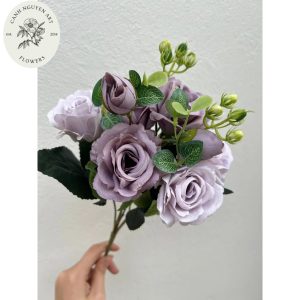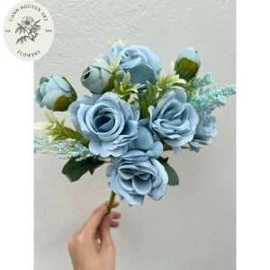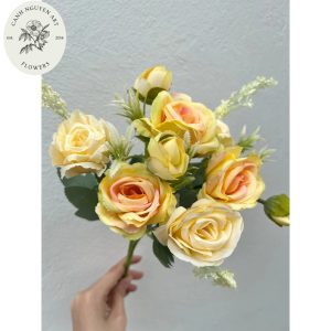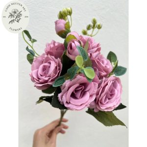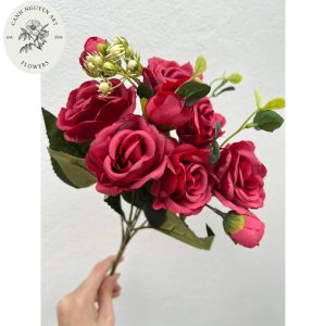 Bó hoa hồng nhật 9 bông chất liệu vải lụa cao cấp bền màu dùng để trang trí nhà cửa