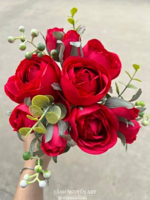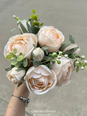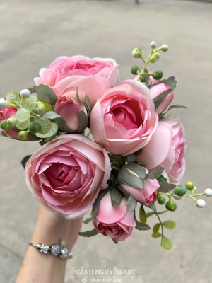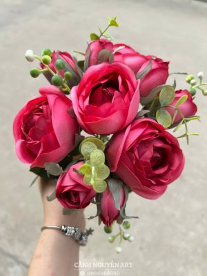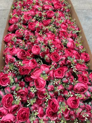 Bó Hoa Hồng trà Giả 9 Bông Cao 30cm – Hoa vải in nhiệt – Thân nhựa lõi thép – Cảnh Nhi Flower