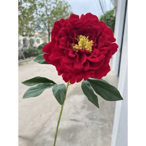 Cành hoa mẫu đơn phủ nhung – Dài 70cm, bông to 18cm – Hoa vải phủ nhung – Thân nhựa lõi thép