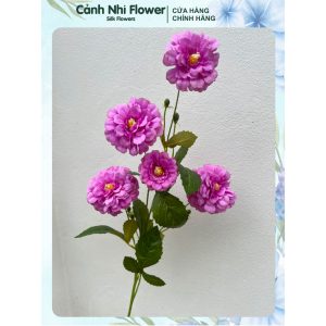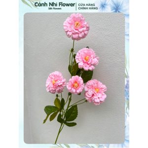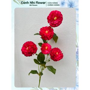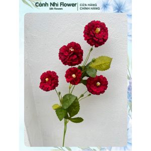 Cành hoa trà my nhân tạo – Dài 92cm, bông to 9,5cm – Hoa vải, thân nhựa lõi thép – Cảnh Nhi Flower
