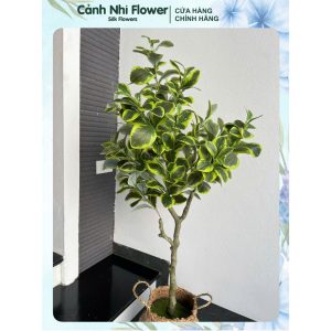 Cành lá oliu nhân tạo 10 nhánh – Cao 100cm – Lá vải – Thân nhựa lõi thép – Cảnh Nhi Flower