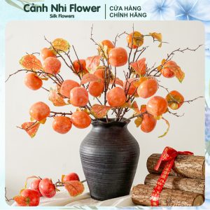 Cành quả hồng giả kết cây – Decor khách sạn, quán ăn, phòng khách sang trọng – Cảnh Nhi Flower