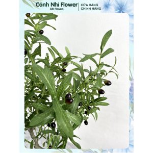 —– Cây ôliu có thiết kế giống như thật, với lá xanh đậm và quả ôliu nổi bật, tạo nên điểm nhấn ấn tượng cho không gian trang trí.