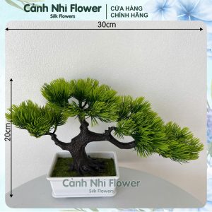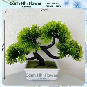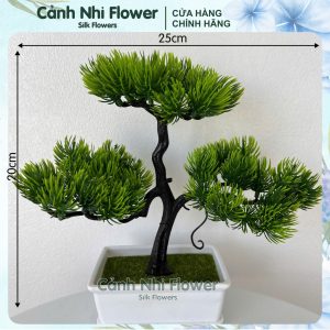 Chậu cây tùng mini bonsai cao 20cm nhân tạo – điểm nhấn xanh mát cho không gian – Cảnh Nhi Flower