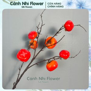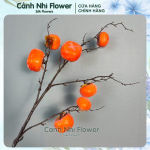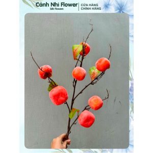 Quả hồng giả trang trí, cành cây giả – cành 7 quả vuông decor trang trí nhà cửa