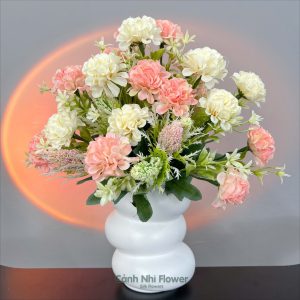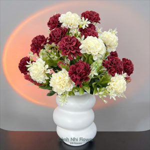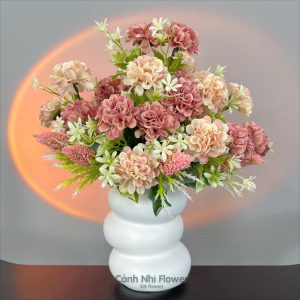(Tặng Bình) Combo Bình Hoa Cúc Tú Cầu Nhân Tạo – Cao 40cm, Xòe 35cm – Cảnh Nhi Flower