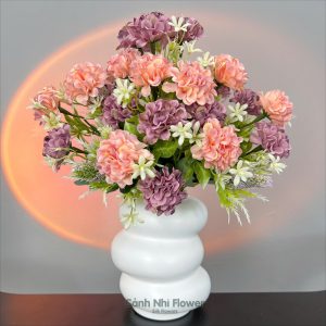 (Tặng Bình) Bình Hoa Cúc Tú Cầu Mini – Cao 40cm – Chậu hoa giả trang trí phòng khách, kệ tivi – Cảnh Nhi Flower