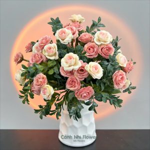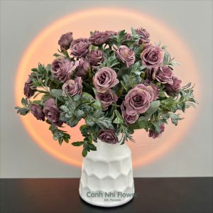(Tặng bình) Combo 4 cụm hoa hồng Tiểu Muội Châu Âu decor trang trí nội thất phong cách vintage – Bình và hoa cao 28cm