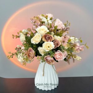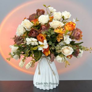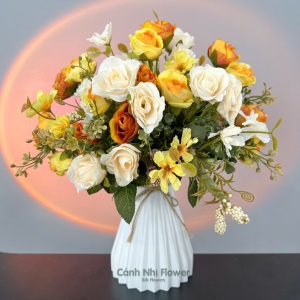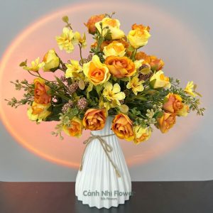 (Tặng bình) Combo 5 cụm hoa hồng phong cách Châu Âu – Cao 35cm – Cảnh Nhi Flower