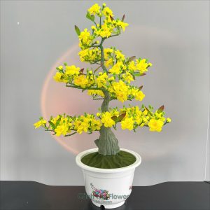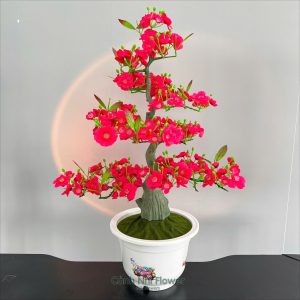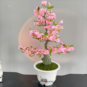(Đã Bao Gồm Chậu) Hoa Mai Đào Phú Quý Chậu Tròn – Cao 85cm – Rễ Phủ Rêu Nhân Tạo – Hoa Lụa Cảnh Nhi